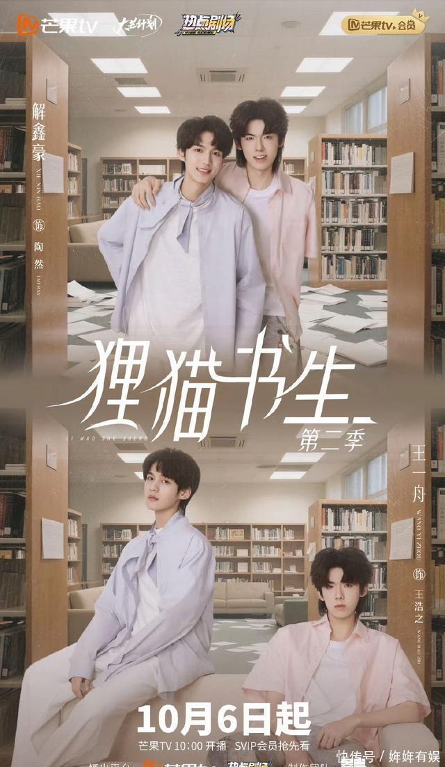 6.《狸猫书生2》 千年猫妖再破时空迷局 主演:王一舟、解鑫豪 播放平台与日期:10月6日10:00,芒果TV独播(共20集/每集10分钟) 剧情概述:千年狸猫再临人间,猫爪撕裂古籍封印,灵眸窥破时空迷局! “玲珑心者”与“猫妖宿主”的宿命再度开启,携手破解新的奇案。